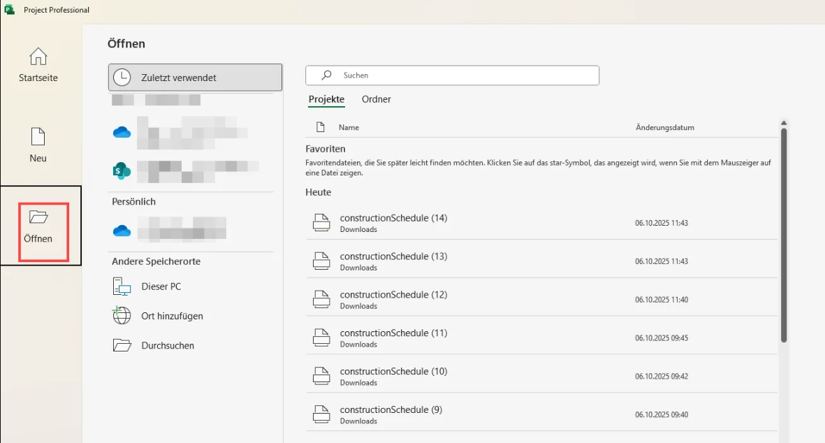1. Klicken Sie in MS Project im Menü auf "Öffnen"